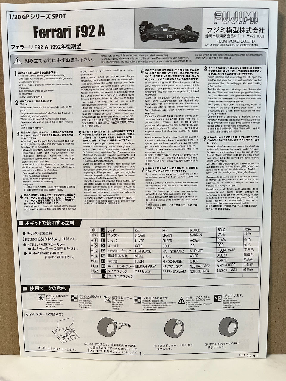 Fujimi 1/20 Ferrari F92A 1992 F-1GP Plastic Model Kit