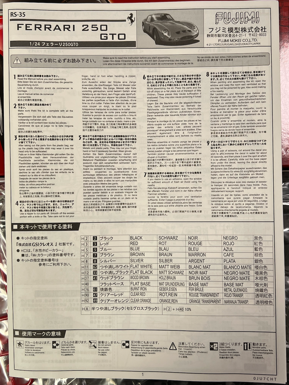Fujimi 1/24 FERRARI 250 GTO Plastic Model Kit