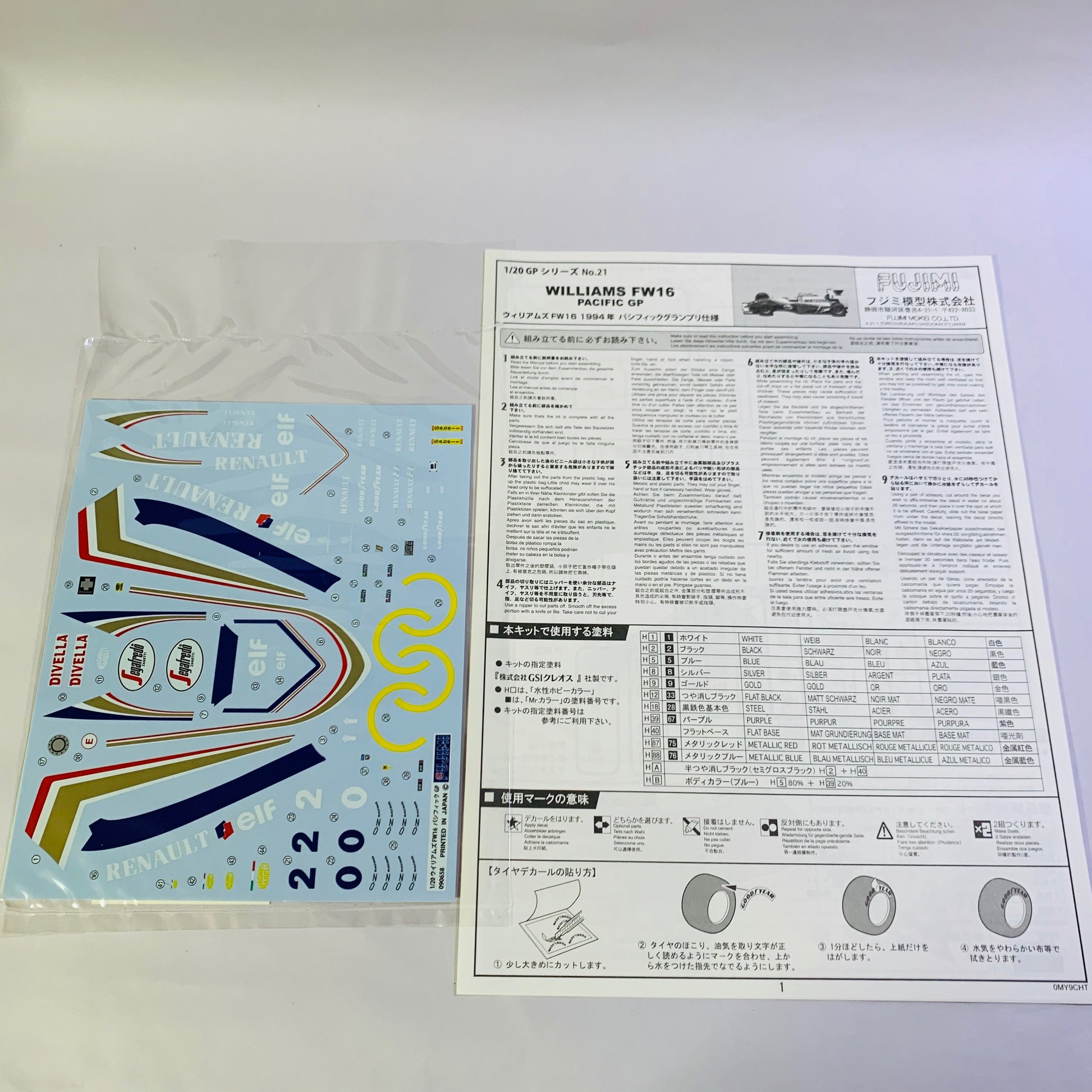 Fujimi 1/20 Williams Renault FW16 Pacific GP 1994 Plastci Model Kit