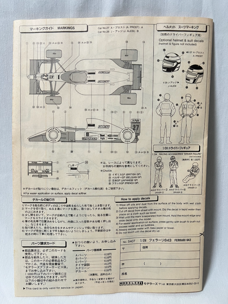 Modeler's 1/24 Ferrari 643 1991 Alain Prost Jean Alesi Plastic model kit Rear